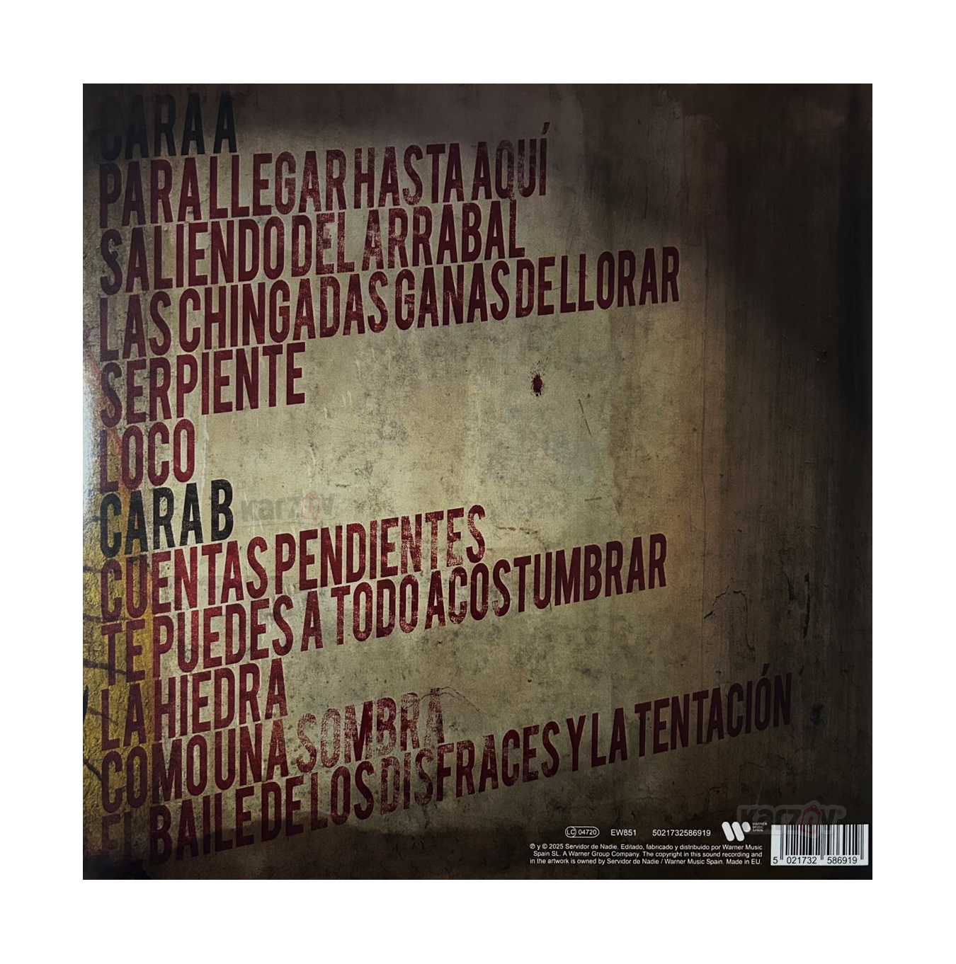 - Contiene 1 LP de 12 pulgadas NEGRO, con las siguientes canciones.
